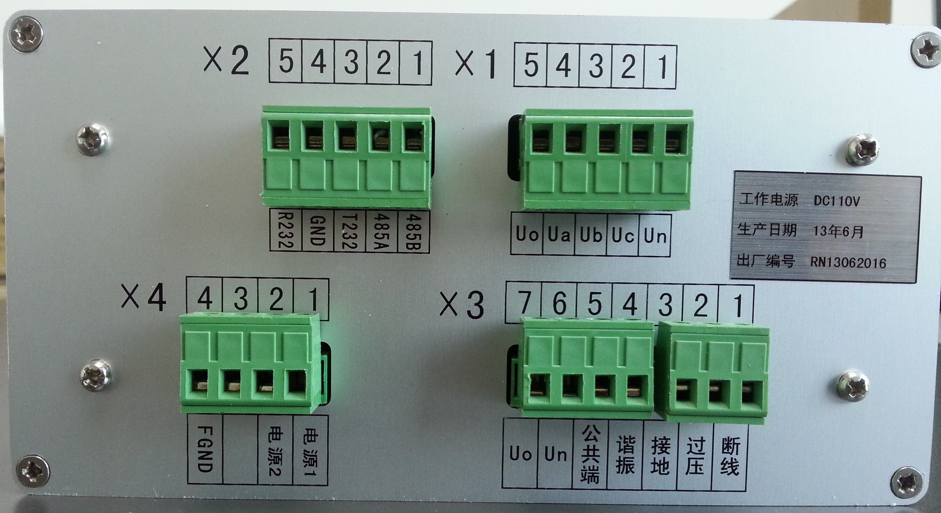 2:过压报警继电器输出节点。