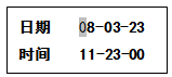 选择时间修改子菜单后,进入该菜单画面(如图10-4)。用“下移” 键选择时钟不同的位,用“上移” 键对选定的位进行修改,按“确认”键确认修改并自动返回到上一级菜单。